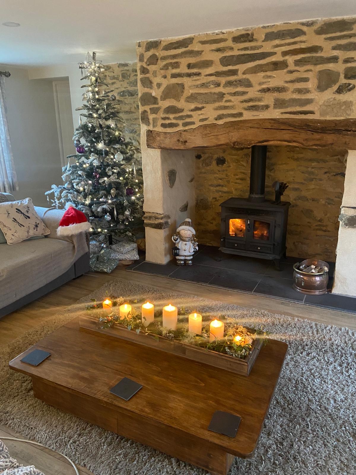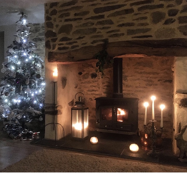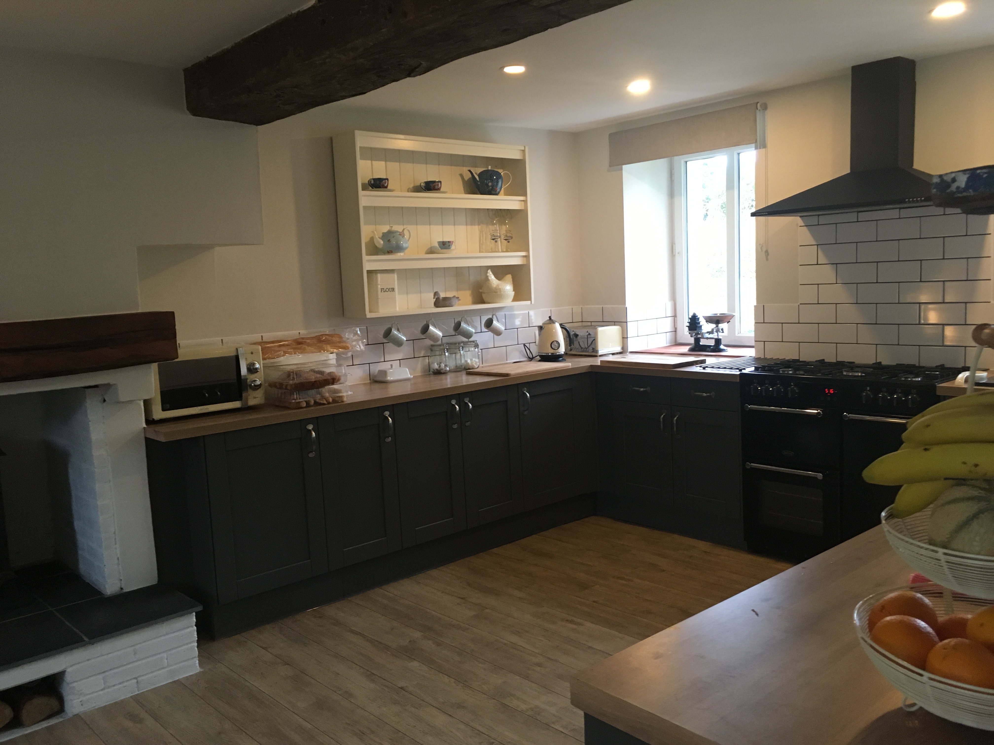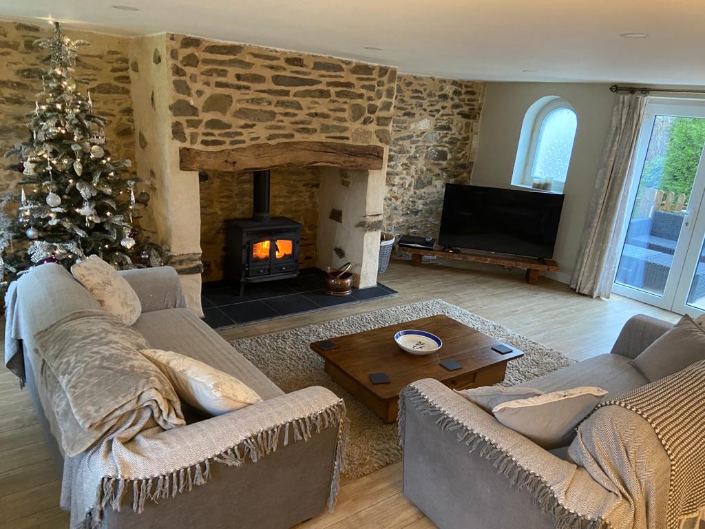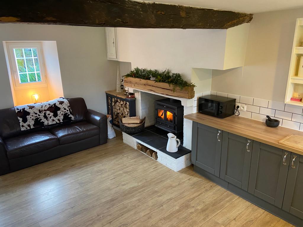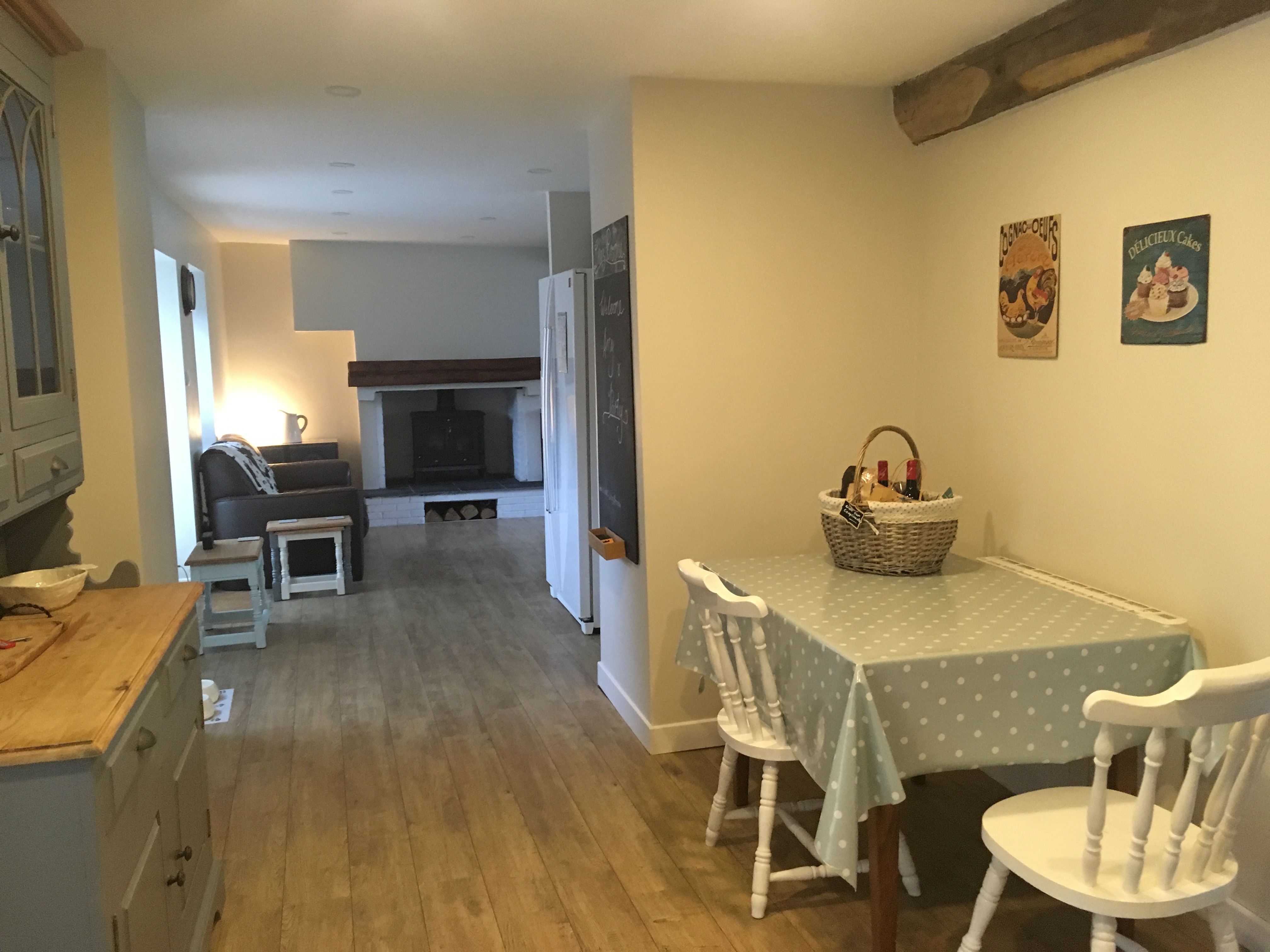 Fully equipped modern newly fitted kitchen with Dining area and log burning fire.